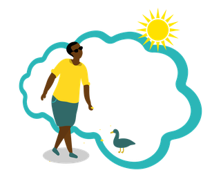 When you're walking, really notice the air brushing past your skin. Notice how it feels against your cheeks – is it warm or cold?