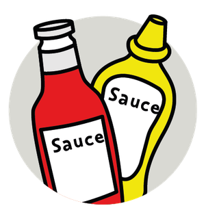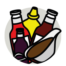 Gravy, brown sauce, mustard, ketchup and soy sauce