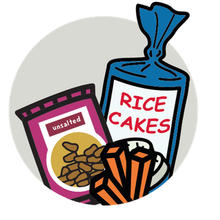 Swap crisps, salted nuts and other salty snacks for plain rice cakes, chopped-up fruit, veggie sticks or unsalted nuts.