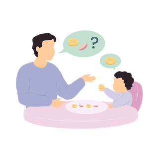 • Say the names of the foods your child is eating and talk about what they're like, for example, "sweet", "sour", "round", "smooth" "cold", "warm".