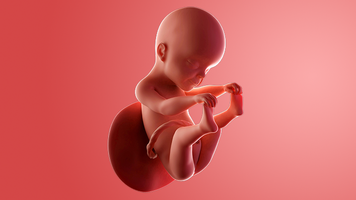 Your baby's limbs are now in proportion. Over the next few weeks, you're going to be kicked around by your baby and will start to see your tummy move too, which looks very strange.