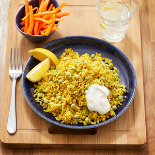 1. Add all the ingredients for the pilau into a large non-stick pan. Cover with a tight-fitting lid and heat on high until the water comes to the boil. Once boiling, turn the heat down to medium and cook, still covered, for 25 minutes.