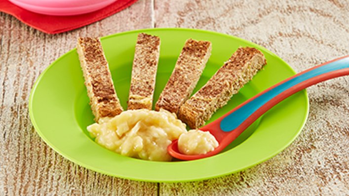 7. Allow the popovers to cool for 5 minutes before removing from the tin. Blend or mash the popover until it is smooth with soft lumps, or slice and serve as a finger food and serve with sliced potatoes and green beans.