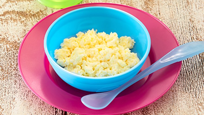 Blend into a purée (or mash with a fork) until you have a soft smooth texture. If the mixture is too thick, add a little full-fat milk or baby’s usual milk.