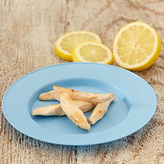 Strips of chicken with a touch of zesty lemon.