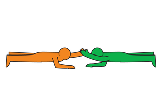 Finally get into a press-up position, hands opposite each other. After each press-up, high-five each other. Repeat on the opposite side.