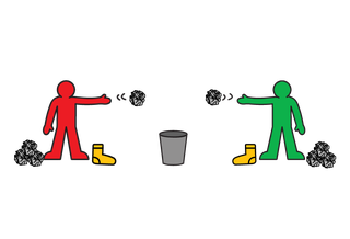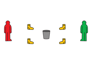 Now you'll need a "pit stop" – you can use socks to mark out a square, then place a bin, box or container in the middle.