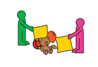 Grab a towel and 5 toys per player. Share the toys between the players.