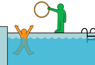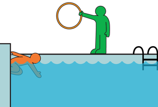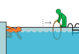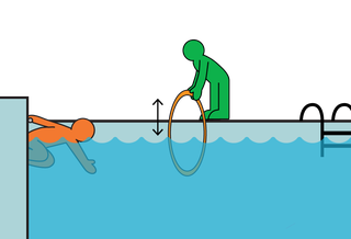 3. Adults stand at an appropriate distance from the pool edge and hold the hoop either halfway above the water or fully under the water.