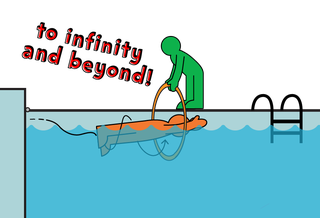 4. Rangers shout "To infinity and beyond!", push off the wall with their feet and glide through the "vortex" (the hoop or noodle) in a streamlined position, turning on their back to activate their wings.