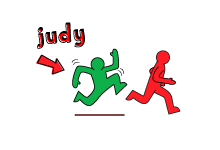 3. Judy gets up and chases after the caller who runs around the circle to take Judy's seat without getting caught.